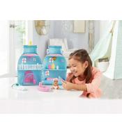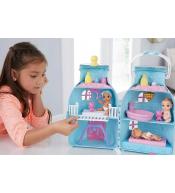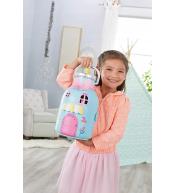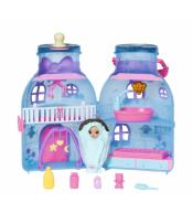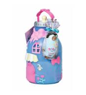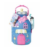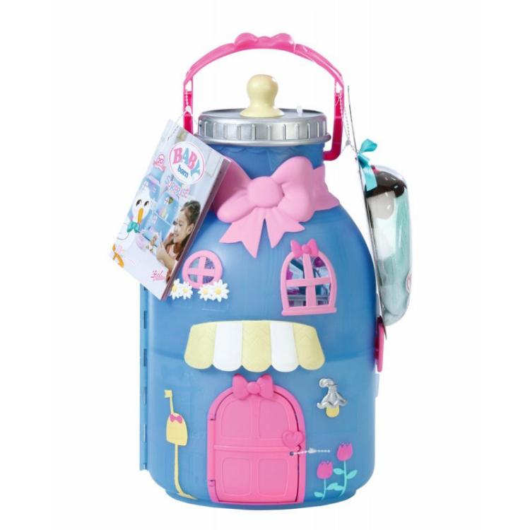 Uroczy domek dla lalek w kształcie olbrzymiej butelki będzie idealnym miejscem relaksu dla bobasów z serii BABY born Surprise. Domek się rozkłada i posiada 2 kondygnacje z pokoikami i akcesoriami. Na parterze znajduje sala zabaw, a na piętrze sypialnia oraz łazienka. Laleczki BABY born Surprise potrafią pic z butelki oraz siusiać do pieluszki - zmienia ona wtedy kolor. Kolor włosów maluchów również się zmienia po kąpieli.