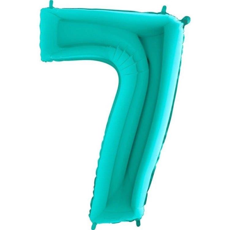 Idealny na urodzinki balon foliowy w kształcie cyfry 7. Można napompować go helem lub powietrzem. Balon ma piękny miętowy kolor.