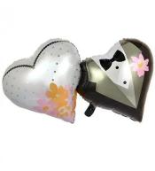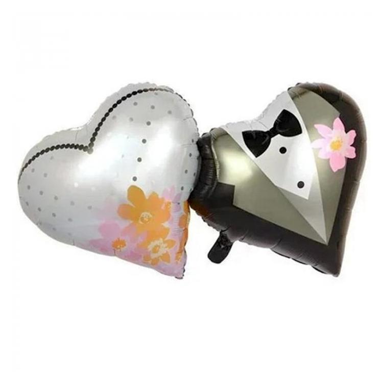 Duży balon foliowy dla Pary Młodej w kształcie złączonych serc. Doskonały na dekorację sali ślubnej czy jako dodatek do prezentu. Można go napęłnić powietrzem lub helem.