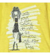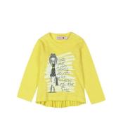 Wykonana z miękkiej, przyjemnej w dotyku bawełny, zapewnia komfort noszenia przez cały dzień – zarówno w domu, jak i w żłobku czy na spacerze. Bluzka ma intensywny, słoneczny żółty kolor, długi rękaw i modny nadruk z dziewczynką i motywującym napisem na przodzie. Tył bluzki zdobi efektowna, plisowana falbanka, która nadaje całości wyjątkowego uroku.