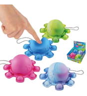 Bubble Pops ośmiorniczka to kolejna odsłona niezwykłych zabawek Pop It robiących furorę na całym świecie. Mają one działanie antystresowe, po wciśnięciu wydają trzask jak folia bąbelkowa. Dzięki formie breloczka możesz mieć tego Pop Ita zawze przy sobie - przypnij go do kluczy, torby czy plecaka.