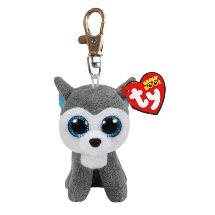 Brelok z zawieszką małego pieska serii TY Beanie Boos SLUSH. - brelok wykonany z miękkiego i przyjemnego w dotyku szaro-białego pluszu, - zawieszka w kształcie pieska rasy husky, - piesek ma czarne i błyszczące oczy zdobione niebieskim brokatem oraz mały ogonek, - sprawdzi się jako breloczek do plecaka czy kluczy,