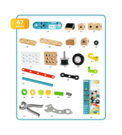 Zawartość opakowania: 1 x obcęgi 1 x szczypce 4 x opona 11 x drewniany element konstrukcyjny 49 x plastikowy element konstrukcyjny instrukcja