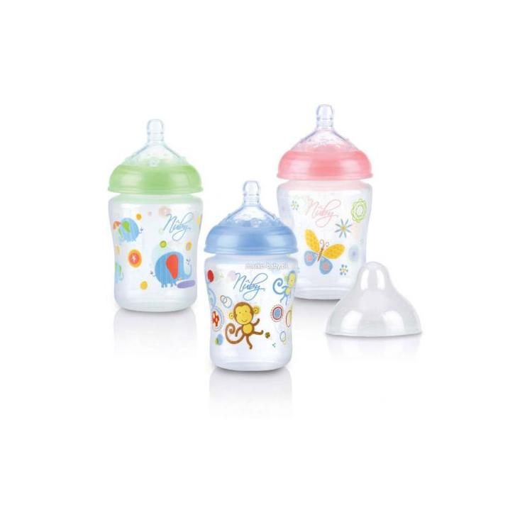 Butelka wykonana z odpornego na uszkodzenia polipropylenu nie zawiera Bisfenolu A smoczek wykonany z silikonu, posiada system antykolkowy oraz „guzkowatą” powierzchnię pomagającą w przebiciu się ząbków, poprzez delikatne masowanie dziąseł