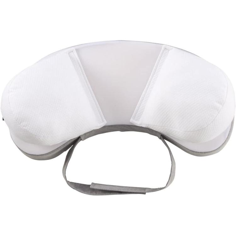 Ergonomiczna poduszka Candide Easy Pillow w kolorze biało-szarym. Idealna dla mam noworodków i bliźniąt, z pasem bezpieczeństwa i zdejmowaną poszewką. Made in France.