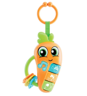 Poznaj Carotinę – sympatyczną bohaterkę z serii Carotina Baby od Lisciani! Ta urocza, elektroniczna zabawka z grzechotką została zaprojektowana z myślą o najmłodszych dzieciach już od 3 miesiąca życia, by wspierać ich rozwój sensoryczny i motoryczny już od pierwszych chwil. Carotina odtwarza wesołe melodie i świeci kolorowymi światełkami po naciśnięciu przycisku z nutką, zachęcając malucha do interakcji. Na uchwycie znajdują się miękkie zawieszki w formie gryzaków, które stymulują zmysł dotyku i pomagają łagodzić dyskomfort podczas ząbkowania. Dzięki praktycznemu zaczepowi zabawkę można łatwo przypiąć do wózka, torby lub łóżeczka, by zawsze była w zasięgu rączek dziecka. Z Carotiną zabawa staje się nie tylko przyjemna, ale i rozwijająca!