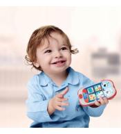 Interaktywny smartfon edukacyjny: dźwięki, melodie i światła zachęcające do zabawy.