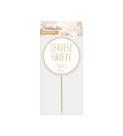 Podkreśl wyjątkowy charakter Chrztu Świętego dzięki papierowemu topperowi na tort. Subtelny design, klasyczna biało-złota kolorystyka oraz eleganckie zdobienia sprawiają, że jest to idealny dodatek do tortu na tę uroczystość.