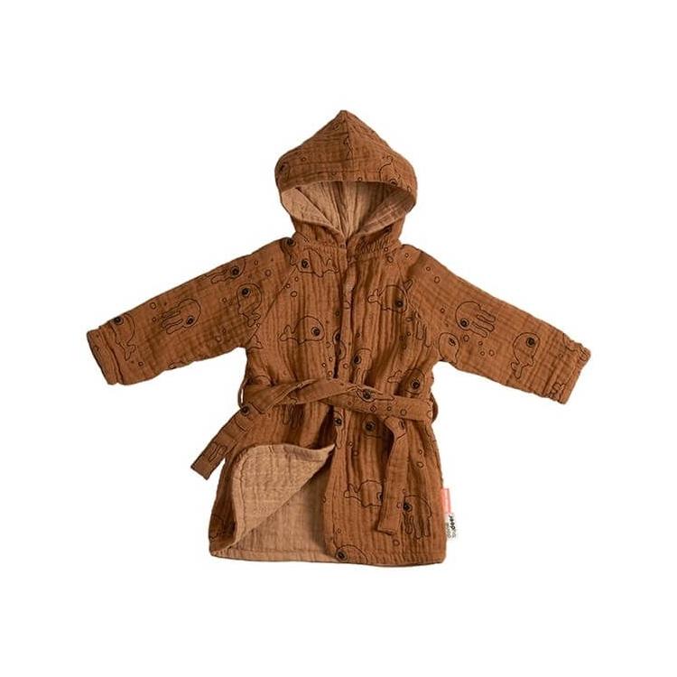Szlafrok muślinowy dla Dziecka w wieku 1-2 L marki Done by Deer Muślinowy, mięciutki szlafrok dla dziecka z kolekcji Sea Friends z długimi rękawami oraz kapturem. Owinąć szkraba po kąpieli w ręcznik jest niełatwym zadaniem szczególnie kilkulatka, który po kąpieli nabiera energii :) Szlafrok, to dobre rozwiązanie w domu, na basenie czy na plaży. Muślin to materiał, który z każdym praniem staje się bardziej miękki. Szlafrok owinięty wstążką, doskonale sprawdzi się w roli prezentu.