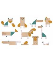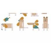 Drewniana gra dla dzieci, dzięki której można tworzyć przeróżne zwierzęta, puszczając wodze fantazji i wyobraźni.