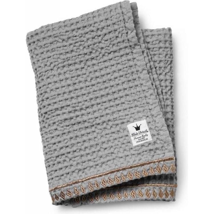 Kocyk wykonany w 100% z organicznej bawełny z tłoczonym wzorem. Ma właściwości regulujące temperaturę i wilgotność. Pozłacany haft inspirowany jest marokańskim folklorem. Idealny do wózeczka, na piknik i w każdej innej sytuacji, gdzie coś tak miłego i ciepłego, mogłoby się przydać. Przystosowany do prania w pralce.