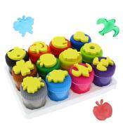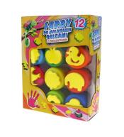 Ze śmiesznymi pieczątkami na zakrętkach pojemników. Idealne dla małych dzieci, np.: do robienia odbitek dłoni i stóp.