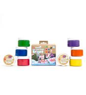 Zawiera 60 ml słoiki z różnymi jasnymi kolorami zmywalnej farby Easy Wash.