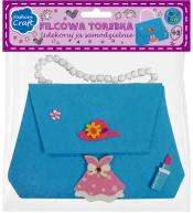 Zestaw przeznaczony dla najmłodszych projektantek. Wykorzystując dołączone filcowe naklejki dziewczynki mogą stworzyć swoją pierwszą, oryginalną torebkę. Projektowanie torebki pobudza wyobraźnię i daje dziecku ogromną satysfakcję z wykonanego dzieła.