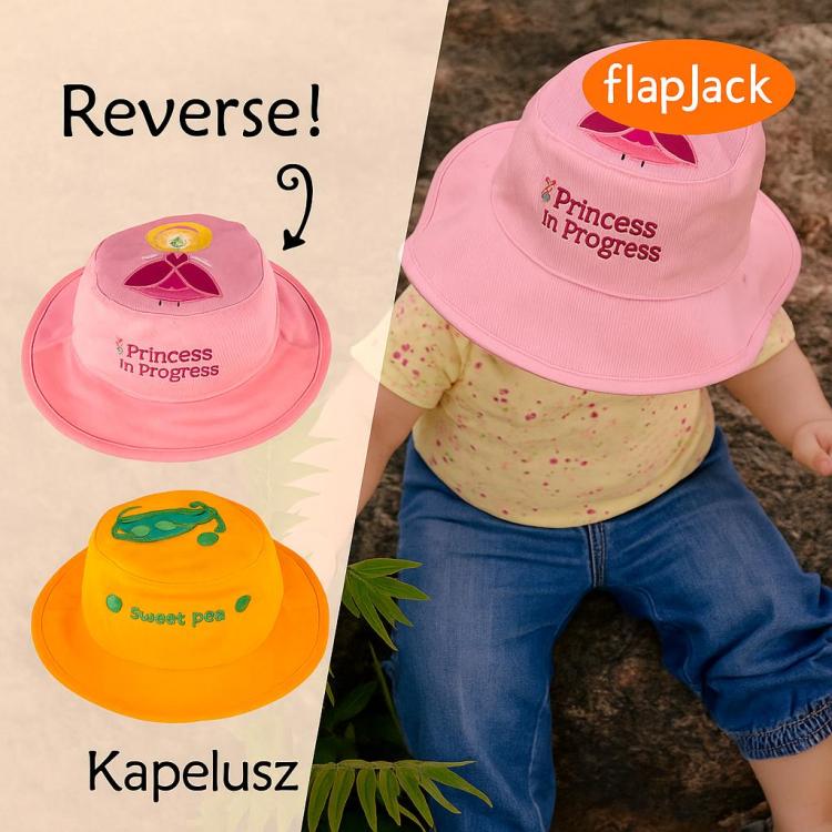 Niezwykły, fantastyczny! Jeden kapelusz - dwa wzory! Wizerunek księżniczki i zielonego groszku, przyjemny bawełniany materiał, a przede wszystkim szybkoschnący, bo taki jest kapelusz FlapJack, sprawią, że stanie się ulubionym wakacyjnym nakryciem głowy malucha. Kapelusz chroni głowę przed promieniowaniem słonecznym dzięki ochronnemu filtrowi UPF 50.