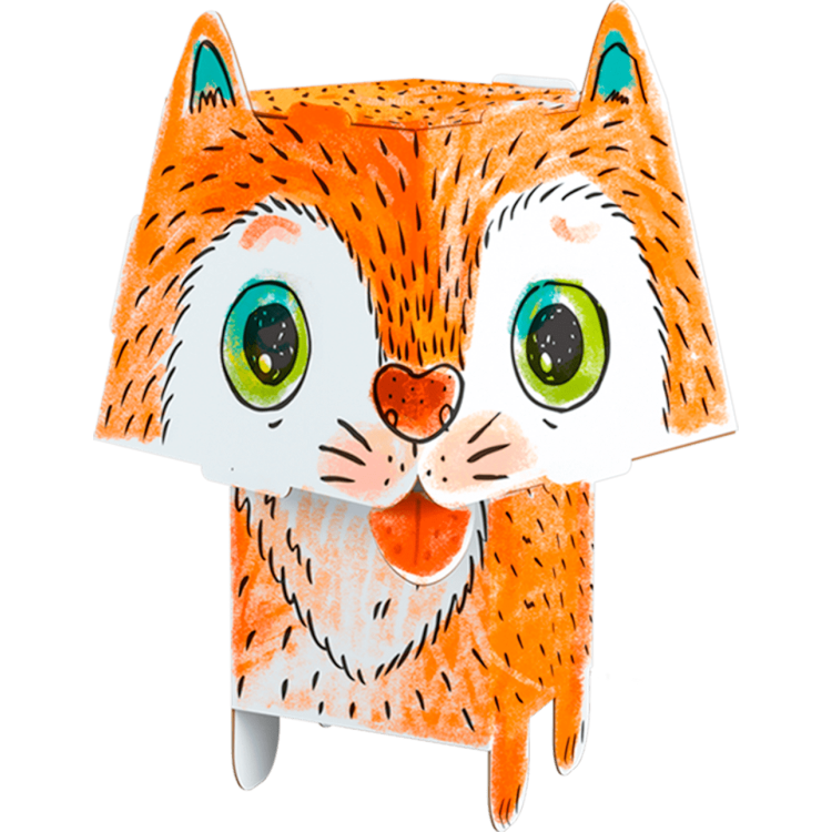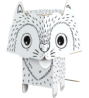 Przestrzenny, mały model zwierzaka z dużą głową do kolorowania. Wykonany z białego kartonu. Precyzyjnie wycięte elementy, łatwe do złożenia bez kleju czy nożyczek.