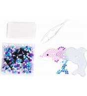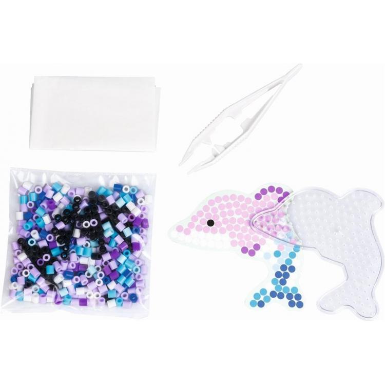 Opakowanie zawiera koraliki do zaprasowywania, z których można wykonać dwa motywy na dołączonej podkładce. Zestaw zawiera również pęsetę, papier do zaprasowywania oraz instrukcję.