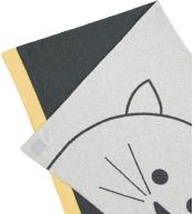Kocyk o wymiarach 70 x 100 centymetrów jest praktyczny dla niemowlaka lub małego dziecka. Kolory są dyskretne i inspirowane stylem skandynawskim i pasują do większości domów. Można go odwrócić, a motyw jest inny z przodu i z tyłu.