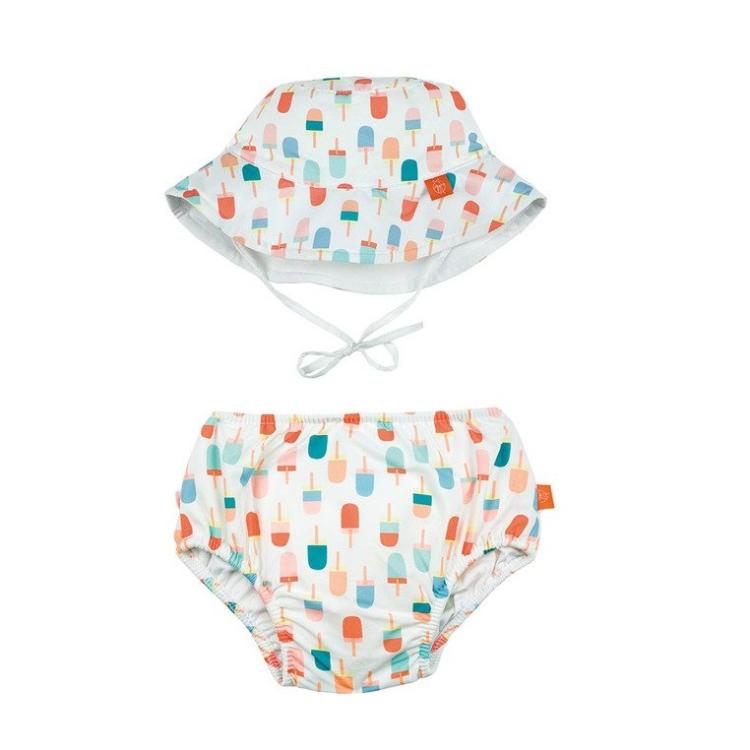 Zestaw kapelusz i majteczki do pływania z wkładką chłonną niemieckiej marki Lassig to idealny komplet dla dziecka na wiosnę i lato.