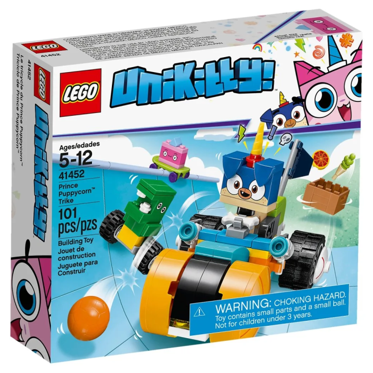 Przeżyj ponownie ulubione sceny z najbardziej radosnego, błyszczącego i kolorowego serialu telewizyjnego w zestawie LEGO® Unikitty! Rowerek Księcia Piesia Rożka. Ten ciekawy pojazd ma dwa miotacze do strzelania klockami błyszczącej materii, kość, flagę, ogromną, toczącą się piłkę do koszykówki zamiast przedniego koła oraz tylne koła z nadrukiem piłek baseballowych. W zestawie jest też skrzynia smakołyków i trzy postacie z serialu do zbudowania.