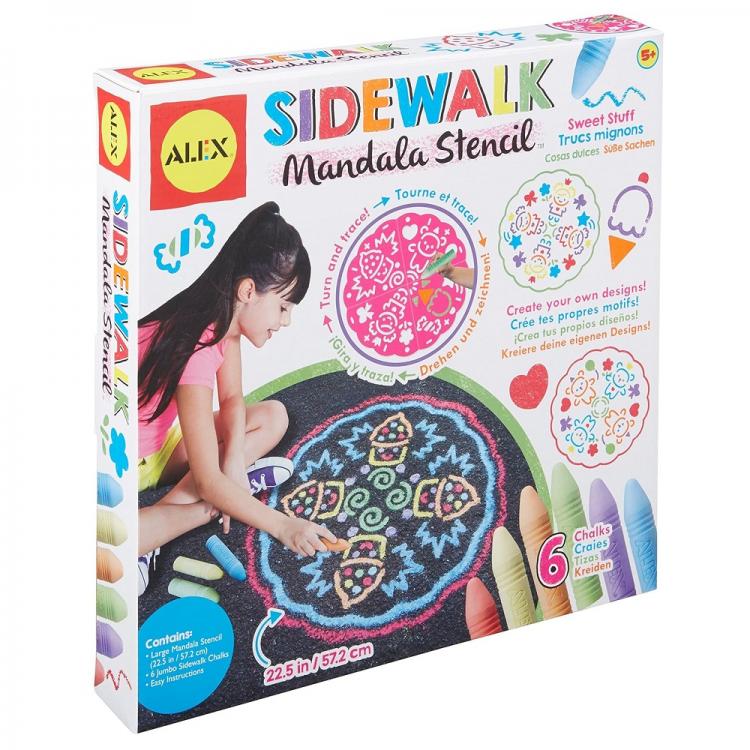 Tworzenie pięknych wzorów mandali kredą na chodniku wyzwoli pokłady kreatywności Twojego dziecka. Skomplikowane wzory są łatwe do stworzenia za pomocą wzornika. Zestaw Alex mandala z kredą chodnikową to idealny pomysł na zabawę na świeżym powietrzu. Mandala zmieści się do każdej torebki i łatwo ją zabrać ze sobą w podróż, jest tez łatwa do czyszczenia.