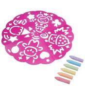 Zestaw zawiera 1 dużą plastikową matę z wzorami, 6 kolorowych dużych kred oraz instrukcję.