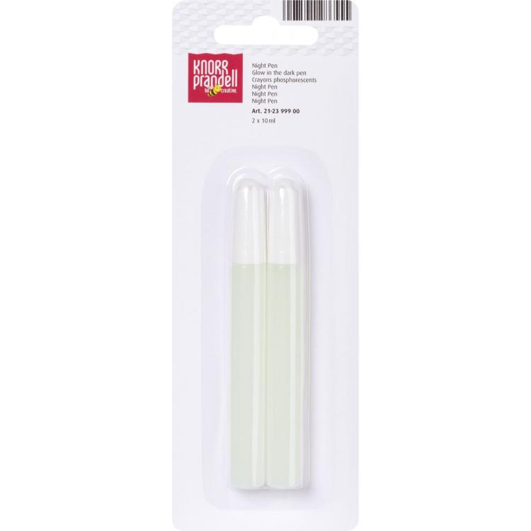 Komplet markerów świecących w ciemności, każdy o pojemności 10ml. Pisaki nadają się do papieru, kartonu, gumy, pianki, drewna, plastiku, szkła, skóry i tkanin. Kolor transparentny, narysowane linie świecą dopiero w ciemności. Zestaw zawiera 2 sztuki.