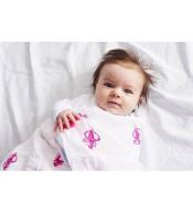 Zestaw trzech otulaczy wykonanych z naturalnej i delikatnej dla skóry bawełnianej tkaniny. Dzięki temu są doskonałym rozwiązaniem do otulania wrażliwej skóry niemowląt. Ponad to zapewniają naturalną regulację temperatury ciała, gwarantując optimum komfortu cieplnego co zapobiega przegrzewaniu się Niemowląt a tym samym redukuje możliwość wystąpienia SIDS. Każdy z otulaczy ma na jednym rogów wszyty sylikonowy gryzaczek.