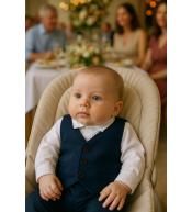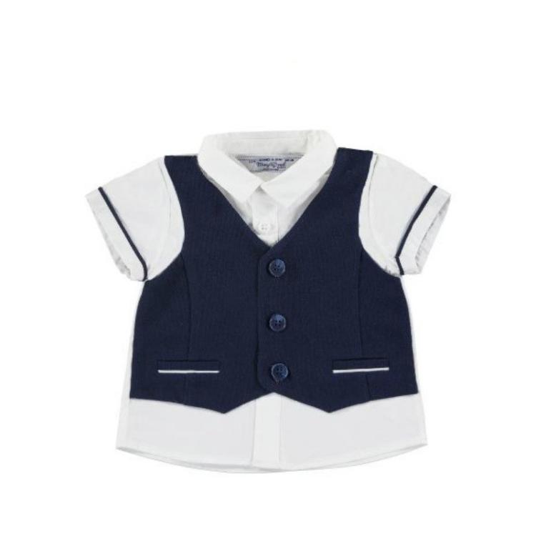 Stylowa koszula z granatową kamizelką Mayoral dla niemowląt (2–4 mies.) to elegancki wybór na chrzest, święta lub inne wyjątkowe okazje.