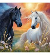 Mozaika diamentowa 40x30cm - Czarny i biały koń na łące • Sklep z zabawkami dla dzieci i niemowląt - Akcesoria dla mam • Sklep Bajka
