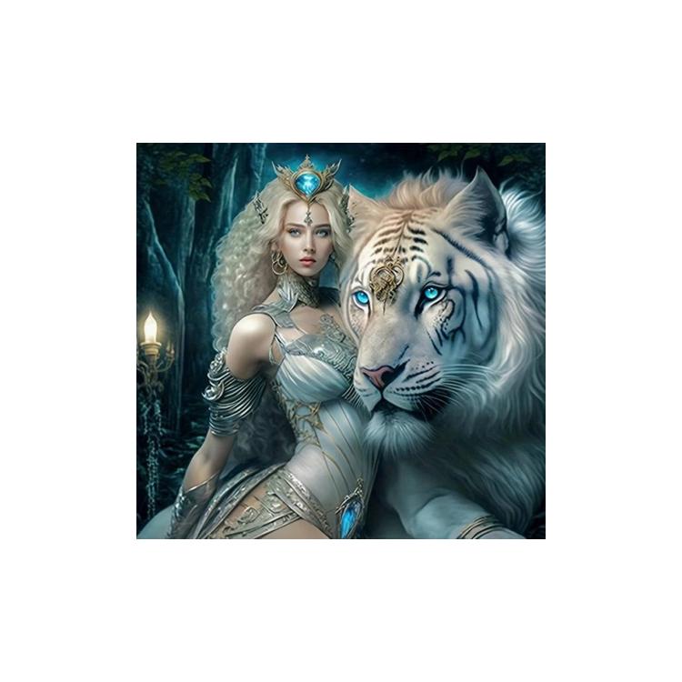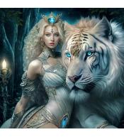 Mozaika diamentowa 40x30cm - Szafirowa królowa i biały tygrys