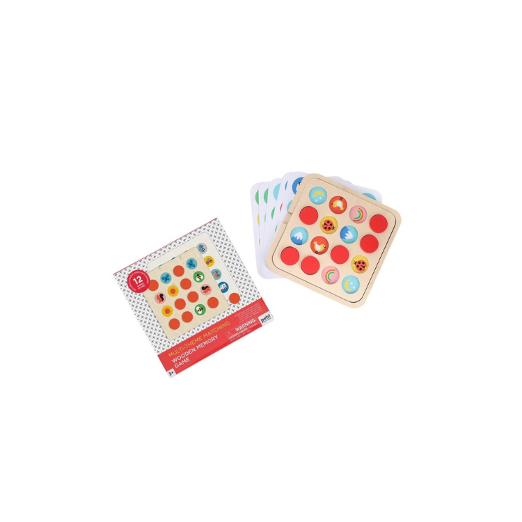 Nietypowe wieloformatowe drewniane memory zawiera aż 12 wariantów zabawy.