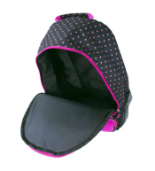 Praktyczny i wygodny plecak z kreatywnym panelem, na którym można tworzyć oryginalne i spersonalizowane grafiki, za pomocą małych silikonowych pikseli. Plecak posiada dużą komorę główną, zapinaną na obustronny zamek błyskawiczny (może zmieścić dokumenty wielkości A4) i kieszeń z przodu na mniejsze przedmioty. Po bokach plecaka umieszczono dwie siateczkowe kieszenie idealne na butelkę z wodą czy bidon. Do plecaka dołączony jest zestaw około 200 kolorowych pikseli.