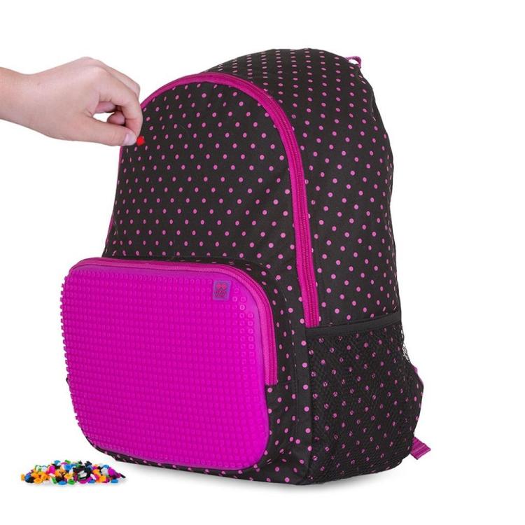 Praktyczny i wygodny plecak z kreatywnym panelem, na którym można tworzyć oryginalne i spersonalizowane grafiki, za pomocą małych silikonowych pikseli.