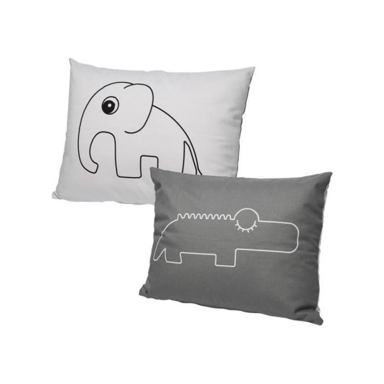 Wygodna i miękka poduszka ze zwierzątkami Done by Deer będzie doskonałą dekoracją dziecięcego pokoju. Wykonana z najwyższej jakości materiałów jest niezwykle mięciutka i przyjemna w dotyku. Z jednej strony poduszki znajduje się słonik Elphee gotowy do zabaw, natomiast po drugiej stronie gotowy do snu krokodyl Croco. Zamek błyskawiczny pozwoli w łatwy i szybki sposób zdjąć i uprać poszewkę.