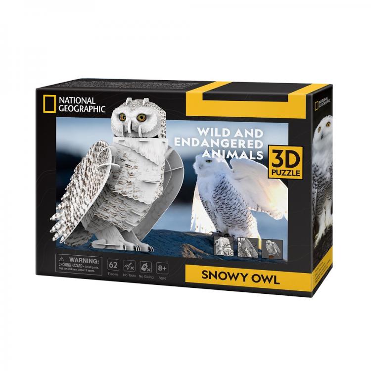 Zestaw trójwymiarowych puzzli składający się z 62 elementów pozwala na zbudowanie majestatycznej sowy śnieżnej.