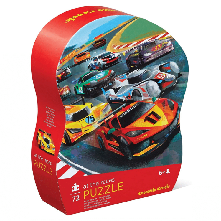 Pełne akcji puzzle Crocodile Creek „At the Races” z 72 elementami to idealna propozycja dla dzieci od 6. roku życia, która rozwija koncentrację i zdolności manualne, przenosząc je w emocjonujący świat wyścigów samochodowych.