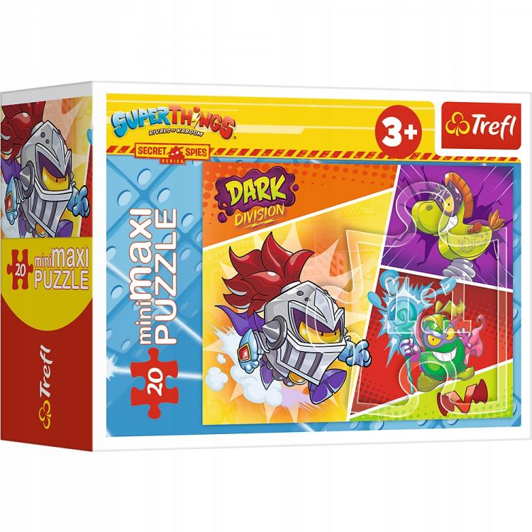Puzzle miniMAXI zawierające 20 elementów zaprojektowano z myślą o wszystkich fanach i fankach serialu animowanego SuperThings. Po ułożeniu układanki powstanie obrazek o wymiarach 16 x 22 cm. To układanka dla miłośników puzzli w małych, wygodnych pudełeczkach, które swobodnie zmieszczą się na półce z zabawkami.