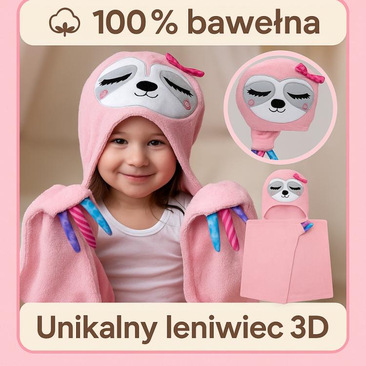 Sadie the Sloth to wyjątkowy ręcznik z kapturem w kształcie leniwca – mięciutki, chłonny i niezwykle efektowny.