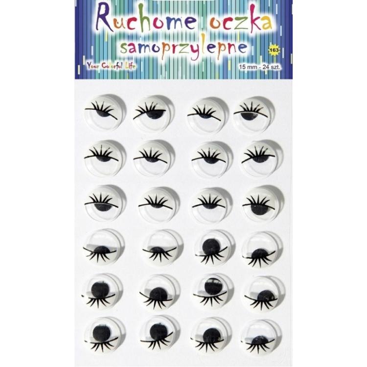 Ruchome oczka z rzęsami 15mm, 24 sztuki
