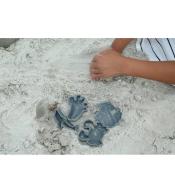 Wyjeżdżasz ze swoją pociechą i nie masz pomysłu jak zmieścić zabawki w jednej walizce? Wybieracie się na słoneczną plażę i macie dość ciężkich, plastikowych zabawek? Mamy dla Was genialne rozwiązanie... Silikonowe foremki Scrunch idealne do zabawy w piasku, wodzie, w czasie kąpieli w wannie. Nie zabierają dużo miejsca w torbie bądź walizce dzięki temu, że można je zgnieść! W zestawie cztery miękkie foremki w kształcie kraba, delfina, muszelki i dziecięcej stópki, całość zapakowana w siateczkę ściąganą sznurkiem.