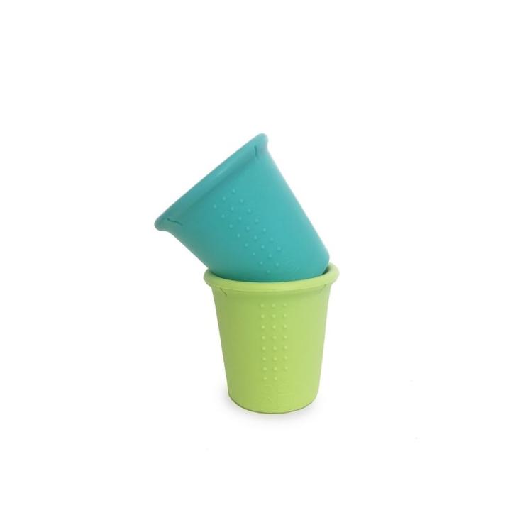 Silikids Kubki Silikonowe Siliskin® Sea/Lime 2szt. Numer kat. SK-CUP2PK01 Idealna alternatywa dla plastikowych kubków - najmocniejsze silikonowe kubki na rynku! Kubki Siliskin® wykonane są w 100% z silikonu spożywczego z osadzonym pierścieniem ze stali nierdzewnej, aby mogły zachować swój kształt. Nie odkształcają się po chwyceniu.