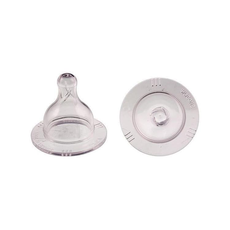 Smoczek do butelek szerokootworowych wykonany z miękkiego i odpornego silikonu. Silikon jest bezbarwny, bez smaku i nie odkształca się nawet po wielu sterylizacjach. Szczególny kształt smoczka został specjalnie zaprojektowany, aby oddawał kształt piersi matki. Funkcjonalny kształt smoczka ułatwia jego czyszczenie.