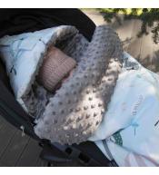 Dla łatwiejszej regulacji temperatury górę śpiworka można z łatwością rozpiąć od góry i odchylić na bok lub rozpiąć od dołu i podwinąć w nóżkach. Posiada otwory na pasy bezpieczeństwa, dzięki czemu śpiworek nie przemieszcza się na siedzeniu i może być stosowany zarówno w wózkach spacerowych jak i fotelikach samochodowych. Produkt szyty ręcznie, z najwyższą dokładnością i z wykorzystaniem najlepszych jakościowo materiałów.