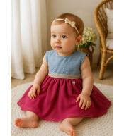 Subtelne połączenie pastelowego błękitu w groszki i głębokiego, malinowego różu sprawia, że sukienka „Signora” idealnie wpisuje się w filozofię marki NINO – klasyka dziecięcej elegancji bez przesady. Góra z delikatnej bawełny zapewnia komfort, natomiast rozkloszowany dół z warstwą szyfonu dodaje lekkości i uroczystego charakteru.