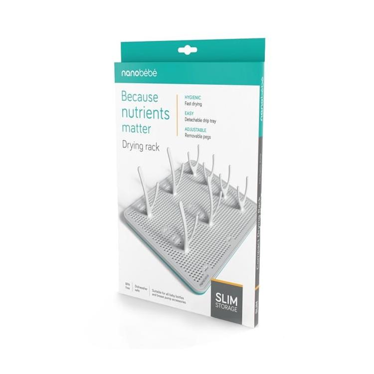 Praktyczna, kompaktowa suszarka do butelek i smoczków ze zdejmowanymi widełkami. Nie zawiera BPA i ftalanów. Nanobebe jest laureatem licznych nagród i wyróżnień oraz posiada pozytywną opinię Instytutu Matki i Dziecka.