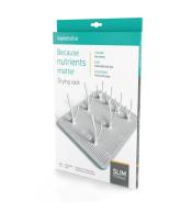 Dwa rozmiary widełek pozwalają na suszenie dowolnych butelek i akcesoriów do karmienia o różnych wielkościach. Widełki można wygodnie zdejmować i układać w różny sposób. Zdejmowana taca zbiera nadmiar wody, którą można łatwo wylać. Po zakończeniu suszenia, można wyjąć wszystkie widełki i przechowywać suszarkę na płasko.