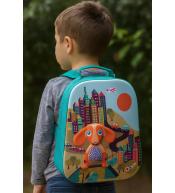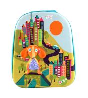 Kolorowy plecak dziecięcy marki Oops z trójwymiarowym motywem wesołego pieska na tle miasta to idealny towarzysz każdego malucha!