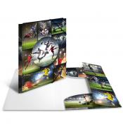 Teczka formatu A3 z wytrzymałego polipropylenu, z motywem piłki nożnej, zamykana na gumki. Idealna do przenoszenia prac plastycznych i innych szkolnych projektów. W środku trzy wewnętrzne klapki z nadrukiem z piłkarzami.