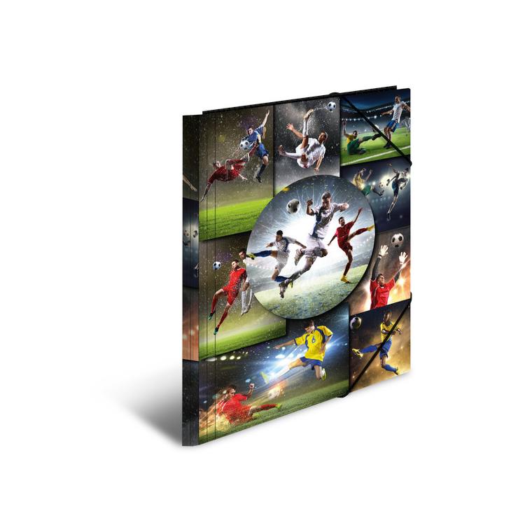 Teczka formatu A3 z wytrzymałego polipropylenu, z motywem piłki nożnej.